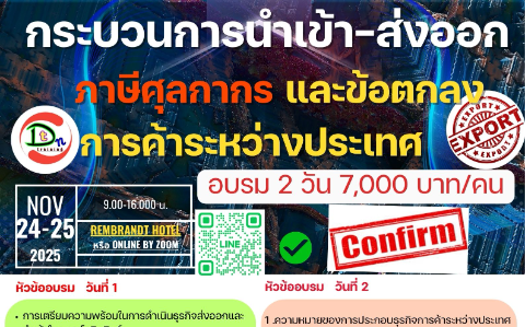 เพื่อให้ผู้เข้าร่วมสัมมนามีความรู้เกี่ยวกับการขนส่งสินค้าระหว่างประเทศ มีความรู้เกี่ยวกับเอกสารการค้าและวิธีชำระเงินระหว่างประเทศ เข้าใจความเสี่ยงด้านศุลกากร และแนวทางการหาความรู้ด้านศุลกากรเพิ่มเติม