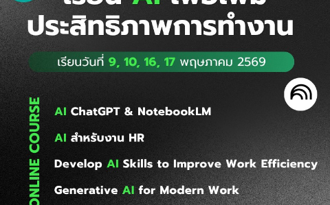 โปรแรง 4.4 อัปสกิล AI เพื่อเพิ่มประสิทธิภาพการทำงาน จาก 999 บาท เหลือเพียงหลักสูตรละ 444 บาท เท่านั้น! เรียนรู้ AI ที่ใช้ได้จริงในงาน ช่วยให้ทำงานเร็วขึ้น ลดเวลา และเพิ่มประสิทธิภาพ เหมาะสำหรับคนทำงานทุกสาย โดยเฉพาะ HR / Admin / Office / ผู้จัดการ