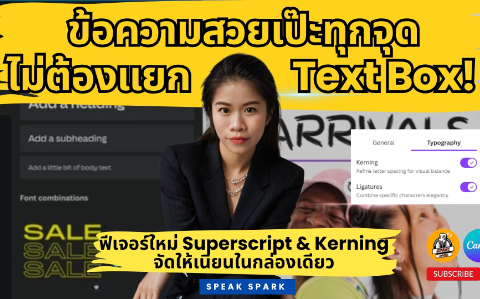 วิดีโอนี้จะแนะนำฟีเจอร์ใหม่สุดเจ๋งของCanvaที่ชื่อว่าSuperscriptและ Kerning (การจัดเรียงข้อความ) ซึ่งจะทำให้ข้อความในงานออกแบบของคุณดูเป็นระเบียบเรียบร้อย