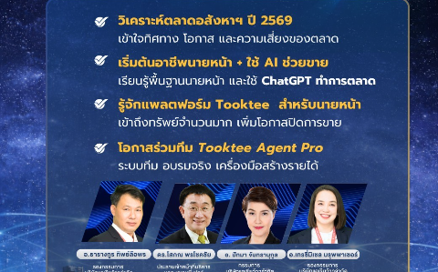 ก้าวแรกสู่นายหน้าอสังหาฯยุค AI มือใหม่ก็เริ่มได้ ร่วมสัมมนากับ TOOKTEE เรียนรู้ตลาดอสังหาฯ ปี 2569 พร้อมเทคนิคใช้ AI ช่วยทำการตลาดและปิดการขาย