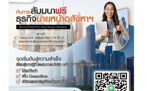 หลักสูตร: เส้นทางสู่การเป็น "นายหน้าอสังหาริมทรัพย์มืออาชีพ" (Be Certified Pro Real Estate Brokers) ก้าวแรกสู่ความสำเร็จในธุรกิจอสังหาฯ เริ่มต้นที่นี่! หากคุณกำลังมองหาโอกาสในการสร้างรายได้ที่ไร้ขีดจำกัด หรือต้องการเปลี่ยนสายงานเข้าสู่ธุรกิจที่มีความมั่นค
