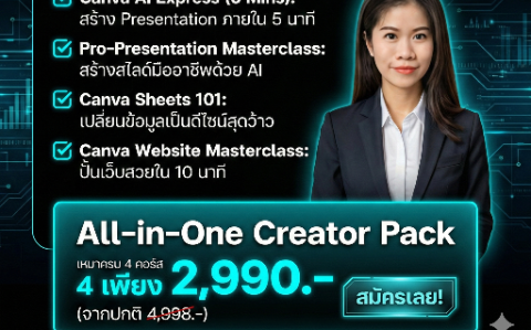 ถ้าคุณอยากมีเว็บไซต์สวย ๆ เป็นของตัวเอง แต่ไม่มีพื้นฐานการเขียนโค้ด?คอร์สนี้จะพาคุณสร้างเว็บไซต์จาก0 ถึงพร้อมใช้งาน ด้วยCanva เครื่องมือที่ง่ายที่สุดในยุคนี้!
