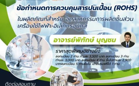 ข้อกำหนดข้อกฎหมายการควบคุมสารปนเปื้อนในผลิตภัณฑ์และสิ่งแวดล้อม SOC / RoHs1.0 /RoHs2.0 /REACH Annex VI / XV / XIV / AVII / SVHC / DMF / VOC / MDA / SCCPs / POPs / Prop65 /Lead in Solder / CMR / WEEE และในภาคอุตสาหกรรมการผลิตชิ้นส่วนเครื่องใช้ไฟฟ้า-อิเล็กทร