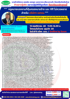 ·                   นายจ้างไม่ควร ลองผิด ลองถูก นอกจากจะเสียเวลาแล้ว ต้องเสียเงินอีกด้วย ถ้าอยากรู้จริง อยากปฏิบัติให้ถูกต้อง ต้องเรียนหลักสูตรนี้