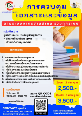 ผู้เข้าร่วมอบรม : ระดับผู้ช่วยผู้จัดการ - ตัวแทนฝ่ายบริหารQMR -เจ้าหน้าที่ควบคุมเอกสาร