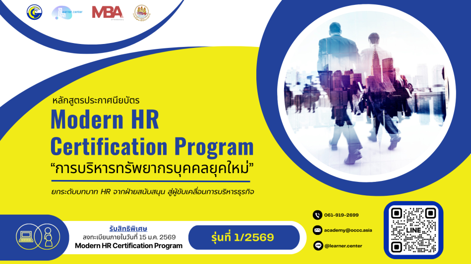 ศึกษารายละเอียดหลักสูตร-หัวข้อการอบรมรม-ลงทะเบียน ได้ที่ >> https://www.learner.center/occc-academy-mhr-c