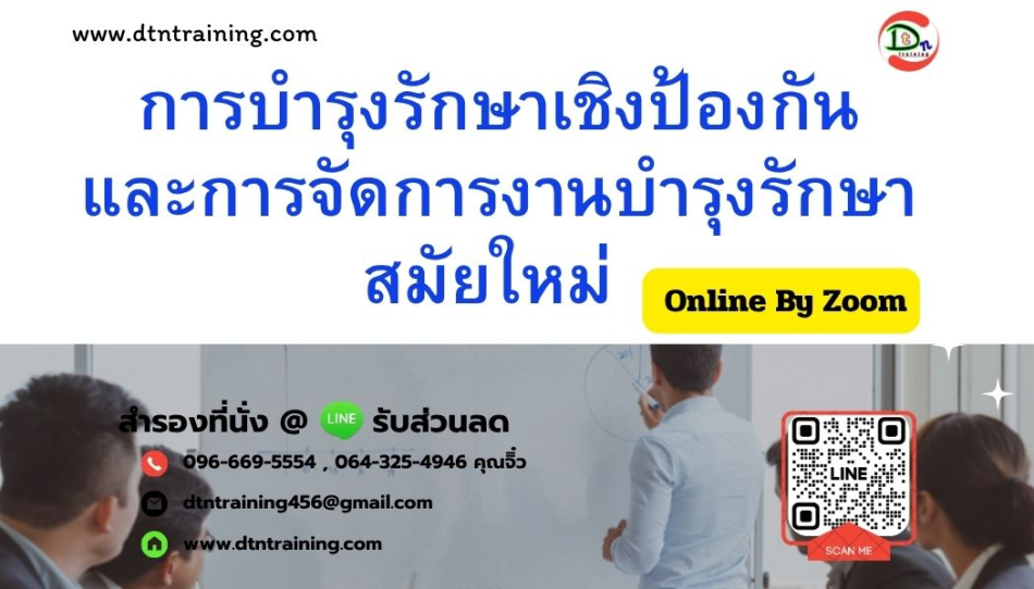 1.แนวคิดในการเพิ่มประสิทธิภาพการผลิต 2.ความสูญเสียหลัก6ประการของเครื่องจักร 3.ความเป็นมาและแนวคิดของระบบการบำรุงรักษา 4.ความสำคัญของระบบการบำรุงรักษา 5.โครงสร้างและหน้าที่ของการบำรุงรักษา 6.รู้จักกับความหมายและการบำรุงรักษาแบบต่าง ๆ o การบำรุงรักษาด้วยตนเอง (Autonomous Maintenance) o การปรับปรุงเฉพาะเรื่อง (Individual Improvement) o การบำรุงรักษาเชิงวางแผน (Planned Maintenance) o การบำรุงรักษาเชิงคุณภาพ (Quality Maintenance) o การบำรุงรักษาทวีผล (Productive Maintenance) 7.ขั้นตอนการทำPreventive Maintenance o เตรียมการและเก็บข้อมูล o วิเคราะห์ข้อมูล o กำหนดมาตรฐาน o จัดทำแผนPreventive Maintenance o ควบคุมและวัดผล 8.Visual Controlเพื่อการตรวจสอบเครื่องจักร 9.การบำรุงรักษาเชิงพยากรณ์ 10.การบำรุงรักษาตามเวลา:TBM 11.การบำรุงรักษาตามสภาพ:CBM 12.การวัดประสิทธิภาพและวิเคราะห์การใช้งานเครื่องจักรร่วมกันด้วยค่า OEE, MTBF, MTTR 13.การแก้ไขปัญหาในการซ่อมบำรุงด้วยCause-Effect Diagram , Tree Diagram , Relation Diagram 14.การระดมสมองเพื่อช่วยประเมินผลบำรุงรักษาตามแผน - Work ShopการทำแผนPreventive Maintenance -นำเสนอแผนPreventive Maintenance