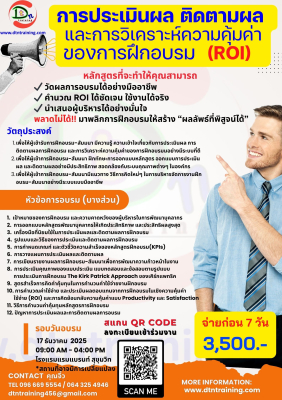 10.   การคำนวณค่าใช้จ่าย และประเมินผลตอบแทนจากการฝึกอบรมในเชิงความคุ้มค่าใช้จ่าย (ROI) และการคิดย้อนกลับความคุ้มค่าแบบProductivity และSatisfaction