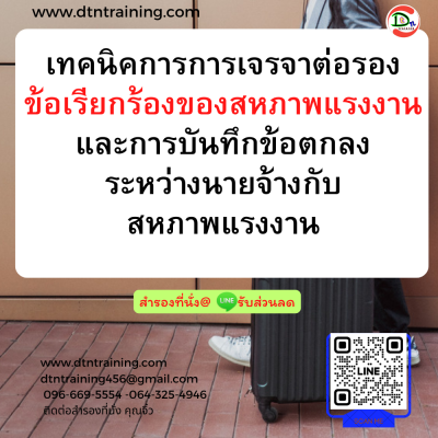 เพื่อให้ผู้เข้ารับการอบรมนำความรู้ที่ได้รับปฏิบัติได้จริงต่อการนำเสนอ นโยบาย การเรียนรู้เทคนิคในการเจรจาต่อรองข้อเรียกร้อง กรณีสหภาพแรงงานยื่นข้อเรียกร้องต่อนายจ้าง หรือนายจ้างยื่นข้อเรียกร้องสวน เพื่อขอเปลี่ยนแปลงสภาพการจ้าง ใช้หลักการเจรจาอย่างไร..ให้ตกลงกันได้ภายในองค์กร และทราบถึงการจัดทำบันทึกข้อตกลงข้อเรียกร้อง ต้องกำหนดข้อความให้ได้รับสิทธิอย่างไร...