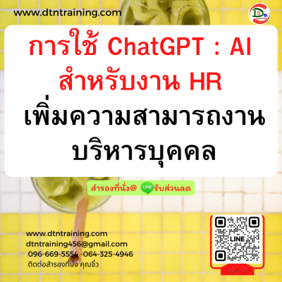 * หลักสูตรนี้สอนโดยนักHRผู้มีประสบการณ์ , ทุกหัวข้อการอบรม มีWorkshopฝึกการเขียน PROMPT โดยวิทยากรได้จัดเตรียมตัวอย่างการเขียนPROMPT ไว้ให้ผู้เข้าอบรมแล้ว
