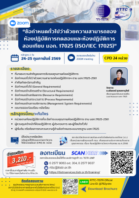 ศูนย์ทดสอบมาตรฐานระบบขนส่งทางราง (ศทร.)สถาบันวิจัยวิทยาศาสตร์และเทคโนโลยีแห่งประเทศไทย (วว.)ได้เล็งเห็นถึงความสำคัญของการจัดทำระบบคุณภาพห้องปฏิบัติการตามมาตรฐาน มอก.17025-2561 จึงจัดหลักสูตรฝึกอบรมเพื่อช่วยพัฒนาบุคคลากรทั้งภาคเอกชนและภาครัฐ ให้มีความรู้ความเข้าใจในเรื่องดังกล่าวและมีความพร้อมรวมทั้งสามารถนำไปใช้ประโยชน์ในวิชาชีพของตนได้อย่างเต็มที่และเต็มประสิทธิภาพ