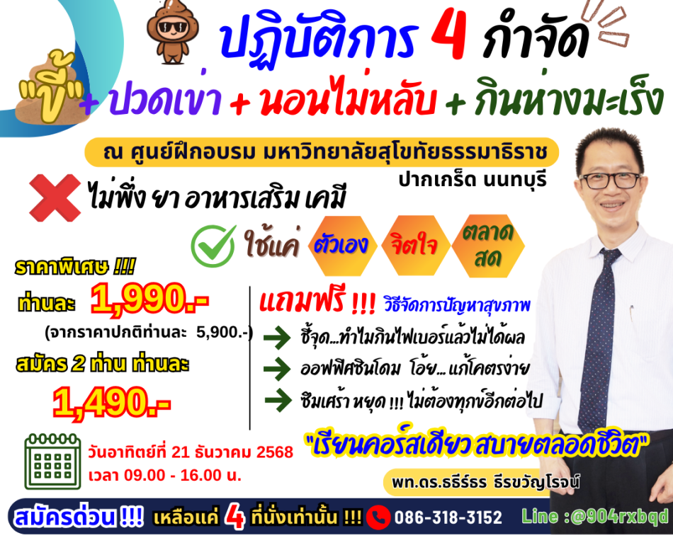 ลงทะเบียนด่วนๆ เหลือ 4 ที่ นั่งเท่านั้น