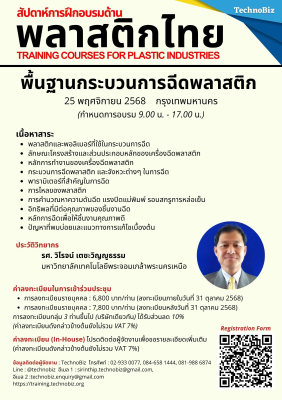 หลักสูตร: พื้นฐานกระบวนการฉีดพลาสติก
