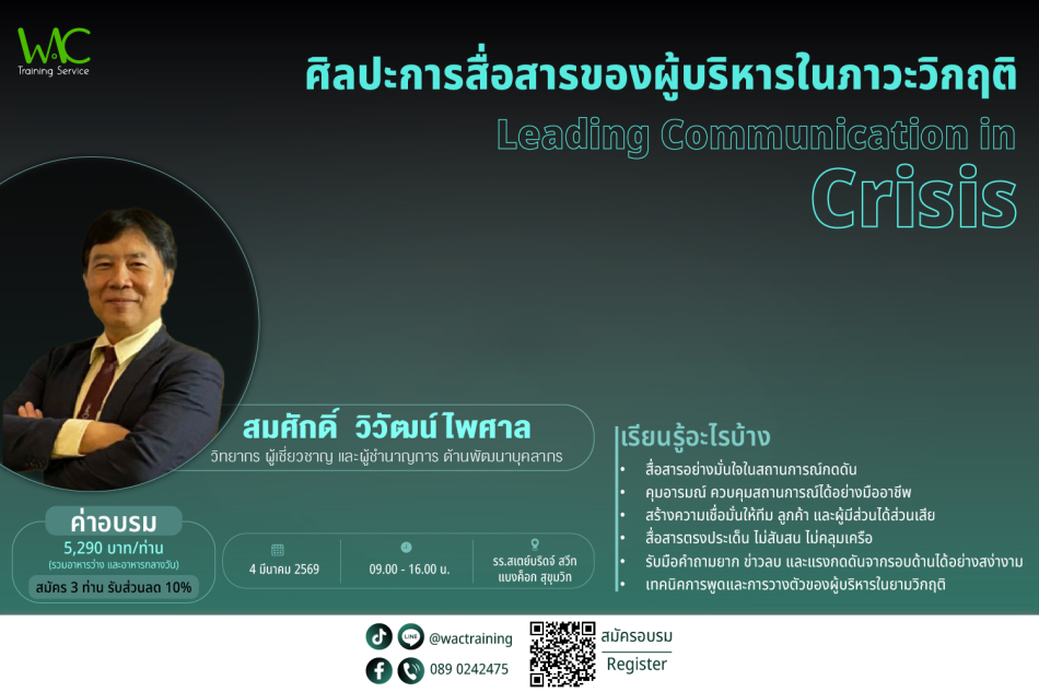 รายละเอียดหลักสูตรอบรม: https://wactrainingservice.com/0304-leadingcrisis.pdf