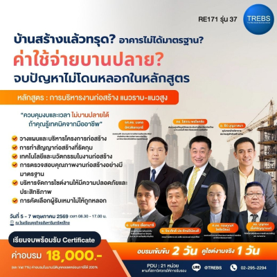 หลักสูตร การบริหารงานก่อสร้าง แนวราบ-แนวสูง (RE171) รุ่นที่ 37