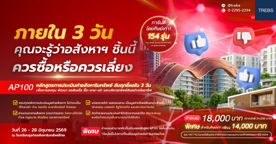 หลักสูตร การประเมินค่าอสังหาริมทรัพย์ สัมฤทธิ์ผลใน 3 วัน (AP100) รุ่นที่ 155