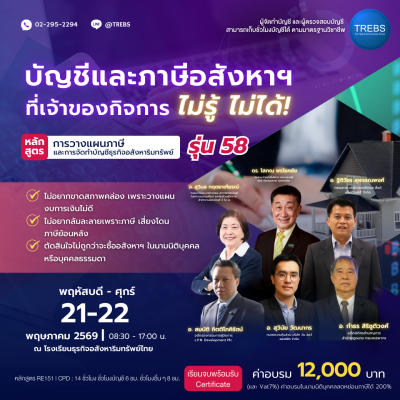 หลักสูตร การวางแผนภาษีและการจัดทำบัญชีธุรกิจอสังหาริมทรัพย์ (RE151) รุ่น 58