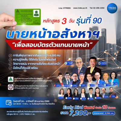 หลักสูตร นายหน้าอสังหาฯ เพื่อสอบบัตรตัวแทนนายหน้า (RE131) รุ่นที่ 90