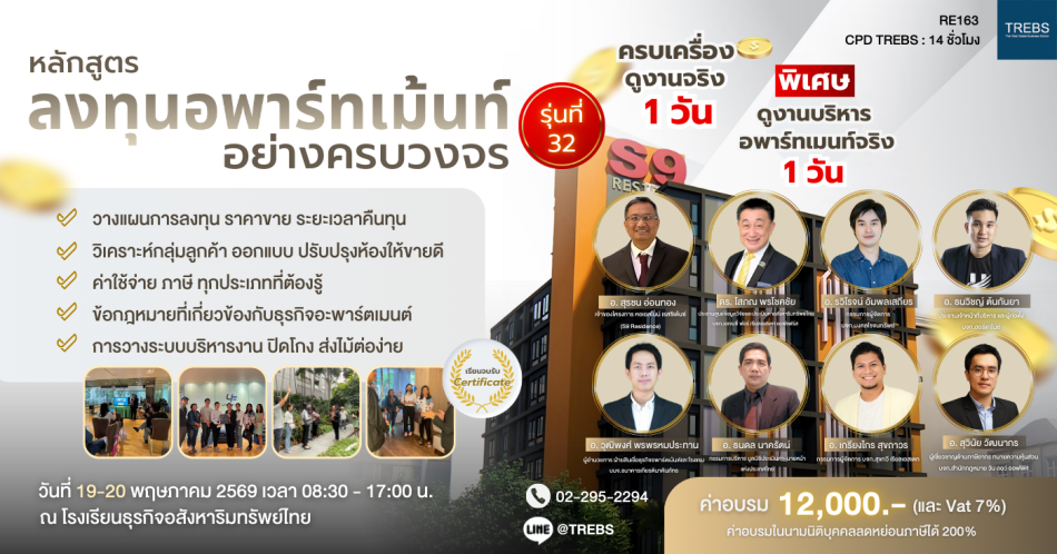หลักสูตร ลงทุนอพาร์ทเม้นท์อย่างครบวงจร (RE163)