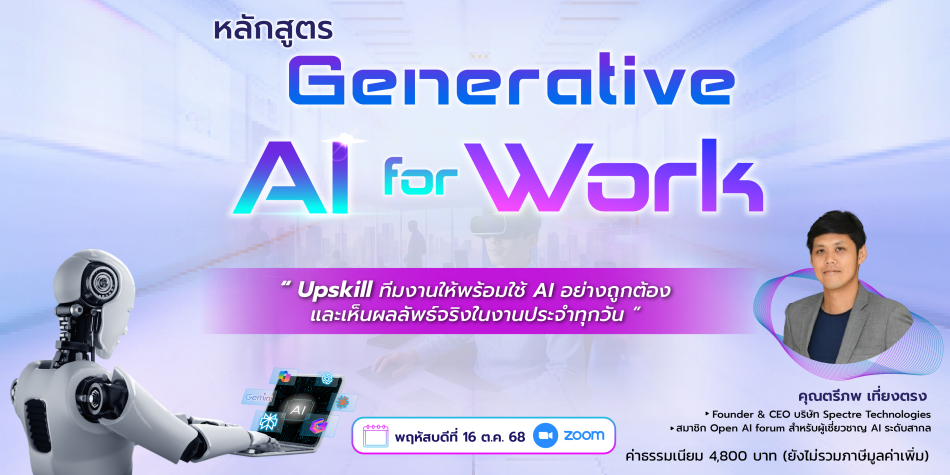"ยกระดับธุรกิจของคุณด้วย Generative AI ที่จะช่วยเพิ่มความ Productivity ในการทำงาน สามารถปฏิบัติงานจริงหลังจบคอร์สทันที"