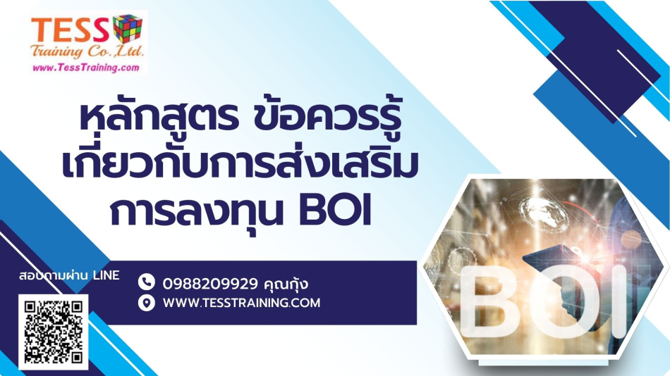 เปิดรับสมัคร ยืนยัน หลักสูตร ข้อควรรู้เกี่ยวกับการส่งเสริมการลงทุน BOIอบรม  19กรกฎาคม2568