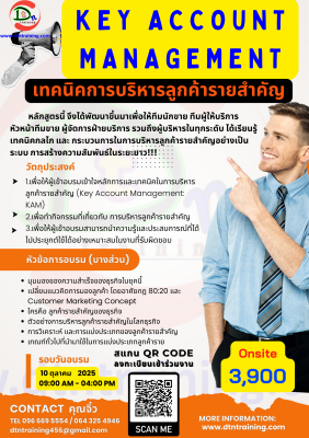 1.เพื่อให้ผู้เข้าอบรมเข้าใจหลักการและเทคนิคในการบริหารลูกค้ารายสำคัญ (Key Account Management: KAM)