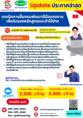 หลักสูตร เทคนิคการยื่นกรมพัฒนาฝีมือแรงงาน เพื่อรับรองหลักสูตรและค่าใช้จ่ายเน้นเนื้อหาที่สอดคล้องกับกฎหมายและระเบียบข้อบังคับของกรมพัฒนาฝีมือแรงงาน พร้อมทั้งเพื่อให้ผู้ที่รับผิดชอบในการพัฒนาบุคลากรภายในองค์กร เรียนรู้ขั้นตอน เทคนิค ในการจัดทำเอกสาร การดำเนินการอบรม การยื่นเอกสารขึ้นทะเบียนอบรม ยื่นเอกสารค่าใช้จ่ายอบรม เพื่อให้กรมพัฒนาฝีมือแรงงานรับรอง