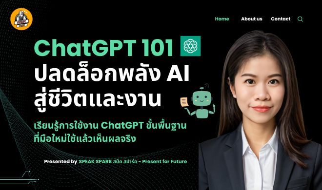 คอร์ส "ChatGPT 101:ปลดล็อกพลังAIสู่ชีวิตและงาน" ไม่ใช่แค่คอร์สสอนใช้เทคโนโลยี แต่คือ ทางลัดสู่ประสิทธิภาพอัจฉริยะ ที่จะเปลี่ยนวิธีคิดและวิธีทำงานของคุณไปตลอดกาล! เราจะพาคุณทะยานเข้าสู่โลกAIโดยที่คุณ ไม่ต้องมีพื้นฐานด้านเทคโนโลยีแม้แต่น้อย! ทุกอย่างถูกออกแบบมาให้ เข้าใจง่ายสุดๆ ลงมือทำได้จริง เห็นผลทันที เหมือนมีผู้ช่วยส่วนตัวอัจฉริยะที่พร้อมอยู่ข้างคุณ24ชั่วโมง