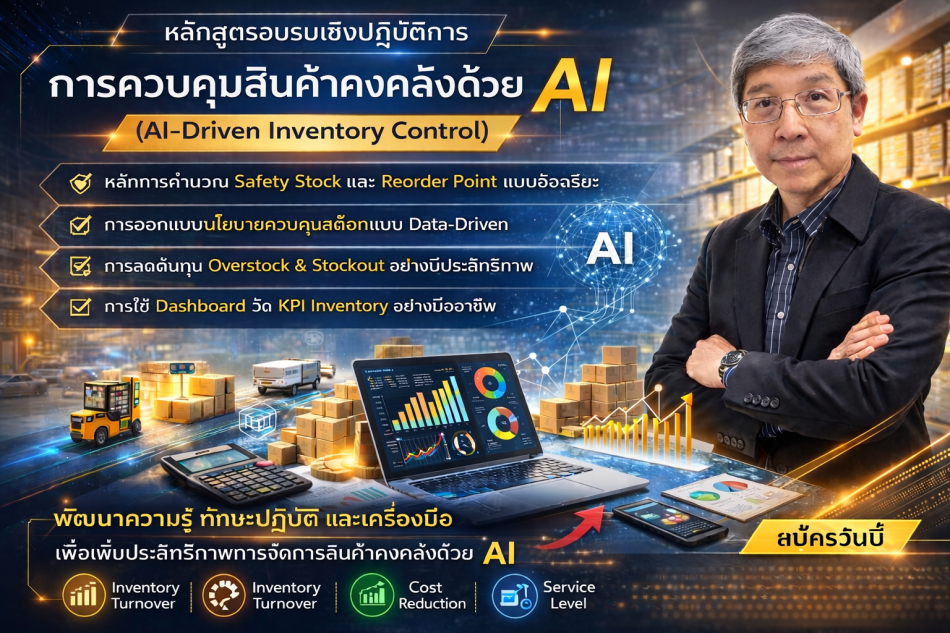 เปิดรับสมัคร ยืนยัน หลักสูตร การควบคุมสินค้าคงคลังด้วย AI (AI-Driven Inventory Control)อบรม30 มีนาคม2569