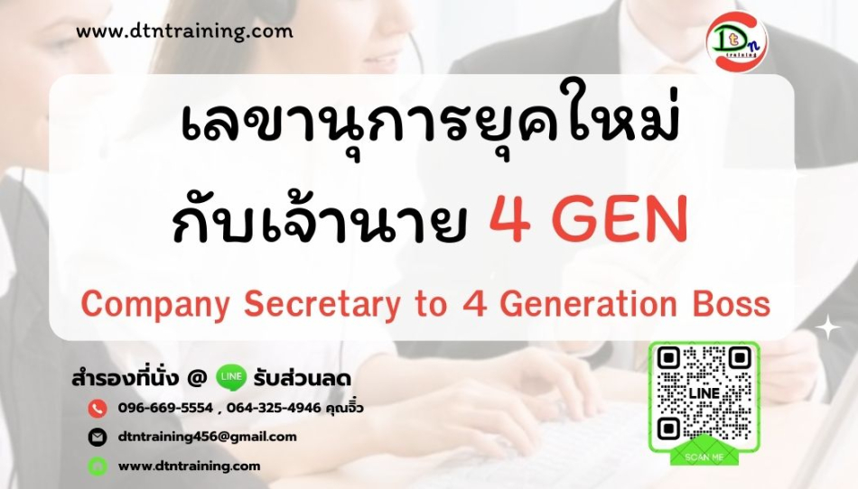 ด้วยเหตุนี้และความสำคัญของเลขานุการบริษัทต้องปฏิบัติหน้าที่ด้วยความรับผิดชอบ ระมัดระวัง และซื่อสัตย์สุจริต และต้องปฏิบัติให้เป็นไปตามกฎหมาย วัตถุประสงค์ ข้อบังคับของบริษัท รวมถึงมติของคณะกรรมการ และมติที่ประชุมผู้ถือหุ้นอีกด้วย การฝึกอบรมสัมมนาครั้งนี้ จึงมุ่งเน้นให้หลักการ แนวคิดใหม่ๆ ที่เป็นรูปธรรมในทำงานกับเจ้านาย4 GENได้อย่างราบรื่น มีความสุข และมีเทคนิคการทำงานกับเจ้านาย4 GENด้วยSELF Model