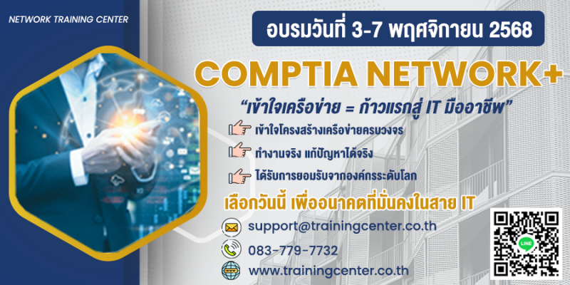 CompTIA Network+ หลักสูตรมาตรฐานให้คุณได้เรียนรู้พร้อมฝึกฝนการใช้งานและบริหารจัดการ ‘ระบบเครือข่าย’ ด้วยเทคนิคที่สมบูรณ์แบบ และตอบโจทย์ทุกการใช้งานขององค์กรมากที่สุด