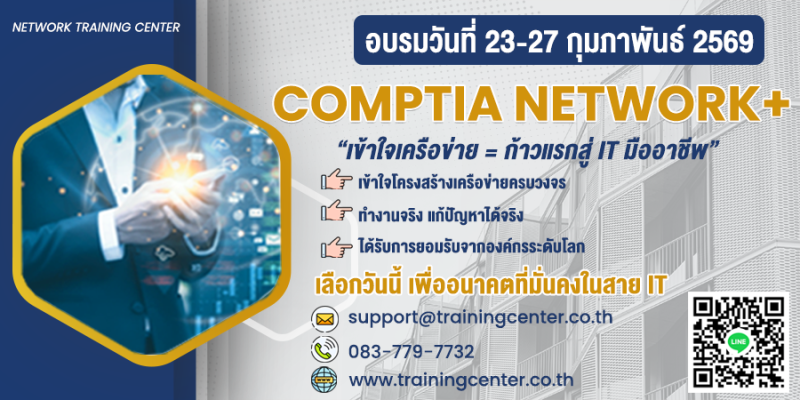 CompTIA Network+ หลักสูตรมาตรฐานให้คุณได้เรียนรู้พร้อมฝึกฝนการใช้งานและบริหารจัดการ ‘ระบบเครือข่าย’ ด้วยเทคนิคที่สมบูรณ์แบบ และตอบโจทย์ทุกการใช้งานขององค์กรมากที่สุด .
