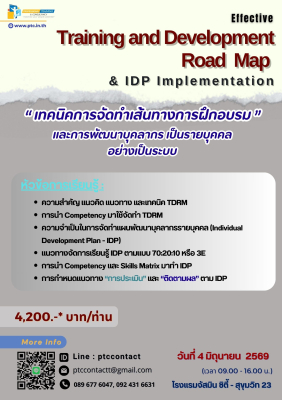 IDP,TDRM,Individuldevelopmentprogram,Trainingroadmap,OJT,Onthejobtraing,อบรมหัวหน้างาน,ชัชวาลอรวงศ์ศุภทัต,internaltraining,HR,ระบบงานทรัพยากรบุคคลงานทรัพยากรบุคคล,ที่ปรึกษาhr ,Professionaltrainingandconsultancy,PTC