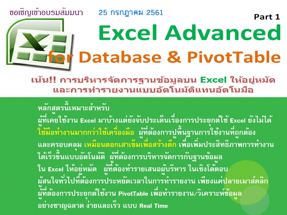 ·ผู้ที่ต้องการประยุกต์ใช้งาน PivotTableเพื่อทำรายงาน/วิเคราะห์ข้อมูล อย่างชาญฉลาด ง่ายและเร็ว แบบReal Time
