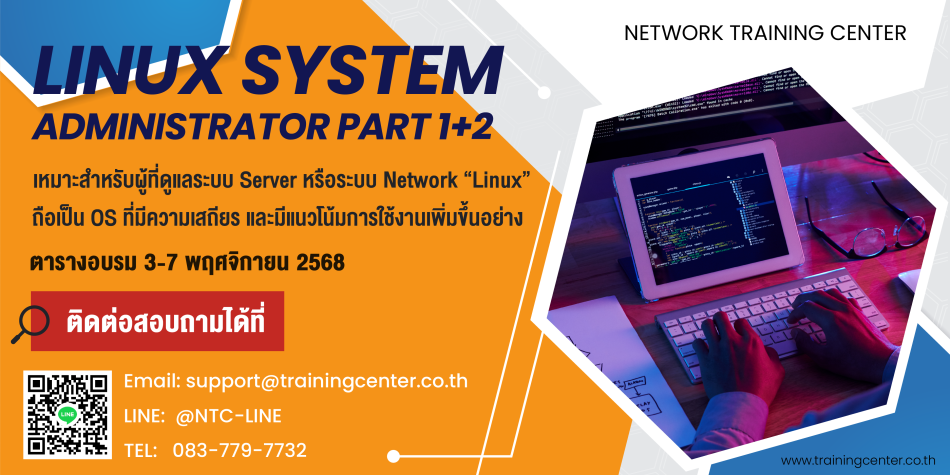 ก้าวสู่โลกของการบริหารระบบ Linux ที่กำลังครองตลาดไอทีทั่วโลก พร้อมเรียนรู้ทักษะที่จำเป็นจากพื้นฐานสู่ขั้นสูงเพื่อใช้งาน และบริหารจัดการระบบได้อย่างปลอดภัยและมีประสิทธิภาพที่สุดด้วยหลักสูตร Linux แบบต่อเนื่องจำนวน 5 วัน ที่ NTC ออกแบบมา เพื่อให้ผู้เรียนมีความรู้และทักษะในการเริ่มต้นเป็นผู้บริหารระบบ Linux มืออาชีพ หรือเพิ่มประสิทธิภาพในการทำงานสำหรับผู้ที่มีประสบการณ์อยู่แล้วให้เชี่ยวชาญยิ่งขึ้น
