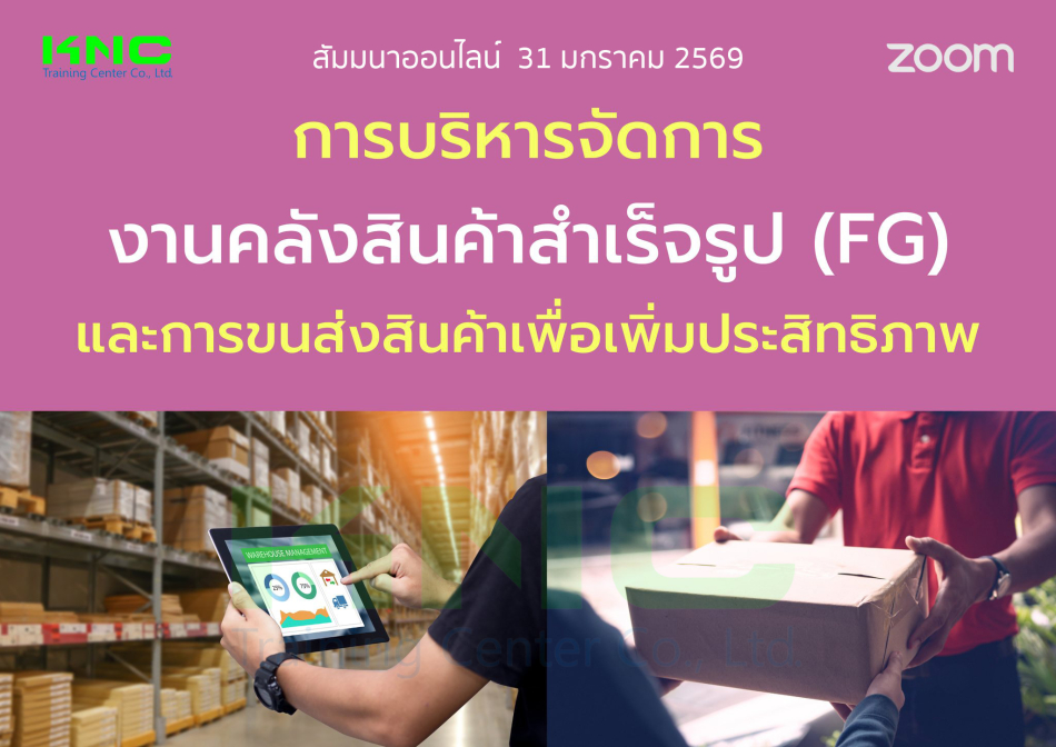 หลักสูตร "การบริหารจัดการงานคลังสินค้าสำเร็จรูป (FG) /และการขนส่งสินค้าเพื่อเพิ่มประสิทธิภาพ" เป็นอีกหลักสูตรหนึ่งที่จะช่วยให้พนักงานในองค์กรของท่านทราบถึงขั้นตอนกระบวนการในการบริการจัดการงานคลังสินค้าและจัดส่ง เพื่อช่วยให้ผู้ปฏิบัติงานลำดับขั้นตอนการทำงานให้เป็นไปตามระบบ เห็นถึงความสำคัญของแต่ละกระบวนการและเข้าใจวิธีการปฏิบัติงานได้อย่างถูกต้อง ทำให้ลูกค้าเกิดความเชื่อมั่นในระบบและกระบวนการปฏิบัติงานขององค์กร รวมถึงป้องกันการทุจริตคอรับชั่นในการปฏิบัติงาน