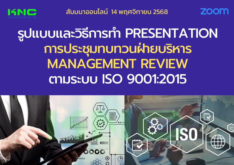 หลักสูตร รูปแบบและวิธีการทำPresentationการประชุมทบทวนฝ่ายบริหาร Management ReviewตามระบบISO 9001:2015 จะช่วยทำให้เกิดความมั่นใจและเข้าใจอย่างชัดเจน ทั้งรูปแบบและวิธีการทำPresentationสำหรับการประชุมทบทวนของฝ่ายบริหาร ตั้งแต่การกำหนดวาระการประชุมAgenda,การจัดทำPresentationสำหรับประเด็นต่างๆ ที่ต้องนำเข้ามาในการประชุมทบทวนฝ่ายบริหารให้ครบถ้วนตามข้อกำหนดของระบบการบริหารคุณภาพ ISO 9001:2015 อย่างไม่ตกหล่น รวมทั้งเทคนิคการดำเนินการประชุมทบทวนฝ่ายบริหารให้ประสบความสำเร็จ,วิธีสรุปสิ่งที่ได้รับจากการประชุมทบทวนฝ่ายบริหาร เพื่อการปรับปรุง,ตลอดจนเทคนิคการเขียนรายงานการประชุมทบทวนฝ่ายบริหารที่ดีอีกด้วย