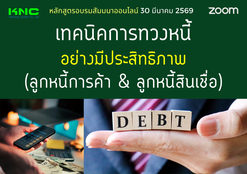 3.ผู้เข้าอบรมจะมีความรู้ความเข้าใจเครื่องมือที่ช่วยให้เราบริหารลูกหนี้การค้าและติดตามทวงถามหนี้ให้มีประสิทธิภาพ