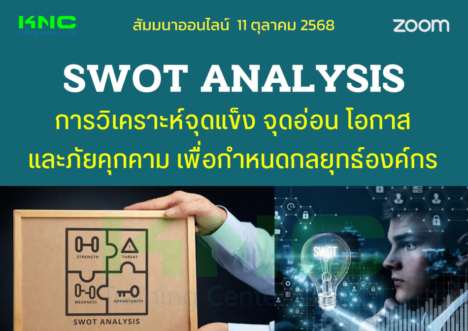 หลักสูตร "SWOT Analysisการวิเคราะห์จุดแข็ง จุดอ่อน โอกาสและภัยคุกคาม เพื่อกำหนดกลยุทธ์องค์กร" จะช่วยให้ผู้เข้าอบรมเกิดความเข้าใจหลักการและเทคนิคในการวิเคราะห์จุดแข็ง จุดอ่อน โอกาสและภัยคุกคามขององค์กร ซึ่งเป็นไปตามข้อกำหนดของระบบการบริหารคุณภาพISO 9001:2015 ข้อที่4 คือContext of the Organizationบริบทองค์กร ด้วยการวิเคราะห์ประเด็นปัจจัยภายในInternal Factorsและ ปัจจัยภายนอกExternal Factorsตามข้อกำหนด4.1 การทำความเข้าใจองค์กรและบริบทขององค์กรUnderstanding the Organization and its Context,รวมถึงเทคนิคในการวิเคราะห์จุดแข็งจุดอ่อน โอกาสและภัยคุกคามSWOT Analysisเพื่อกำหนดกลยุทธ์องค์กรให้ประสบความสำเร็จได้อย่างยั่งยืน