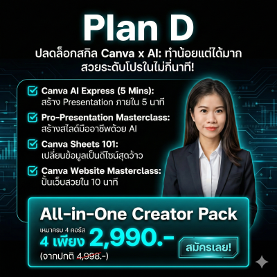 Plan Dปลดล็อกสกิลCanva x AI:ทำน้อยแต่ได้มาก สวยระดับโปรในไม่กี่นาที!