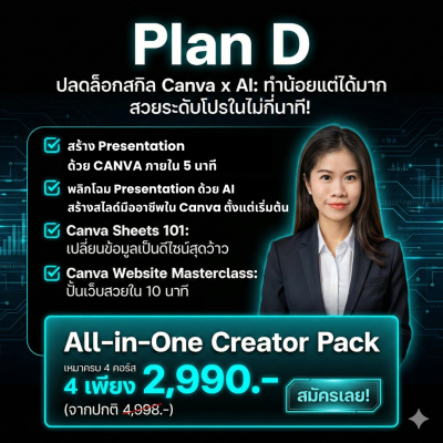 Plan Dปลดล็อกสกิลCanva x AI:ทำน้อยแต่ได้มาก สวยระดับโปรในไม่กี่นาที!
