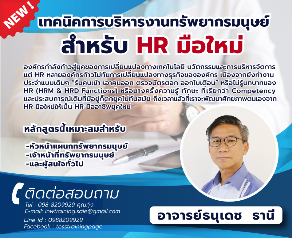 Public Training การบริหารการบริหารงานทรัพยากรมนุษย์สำหรับ HR เริ่มต้นให้เป็น HR มืออาชีพ 5 พฤศจิกายน