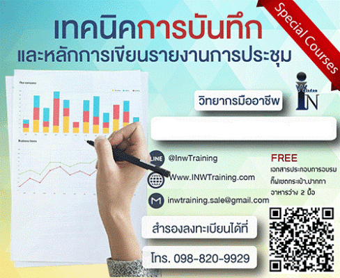 Public Training เปิดรับสมัคร ยืนยัน เทคนิคการบันทึกและหลักการเขียนรายงานการประชุม ประยุกต์ใช้ในการปฏ