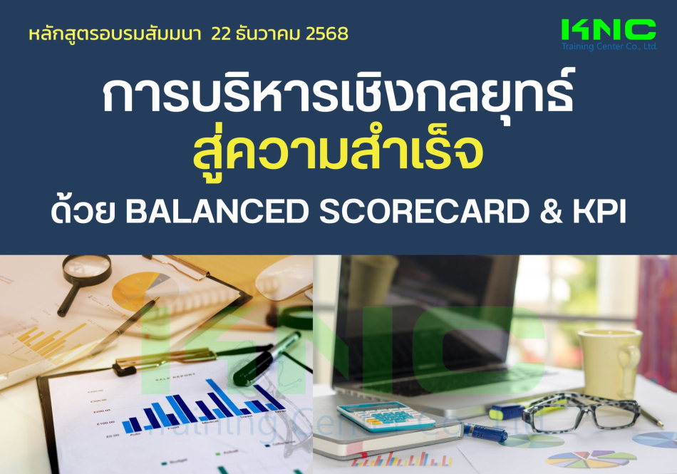 หลักสูตร "การบริหารเชิงกลยุทธ์สู่ความสำเร็จด้วยBalanced Scorecard & KPI"เป็นหลักสูตรที่จะทำให้เกิดความรู้ความเข้าใจ การบริหารเชิงกลยุทธ์Strategic Managementการนำเครื่องมือในการบริหารเชิงกลยุทธ์สู่แนวทางปฏิบัติจริง Strategic Implementationด้วยBalanced Scorecard & KPI
