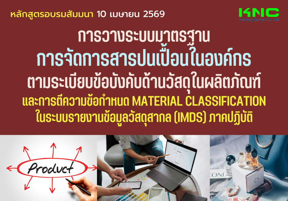 หลักสูตรนี้ผู้เรียนจะได้เรียนรู้ข้อกำหนดการควบคุมสารปนเปื้อนSOC / ELV / RoHs1.0 /RoHs2.0 /REACH Annex VI / XV / XIV / AVII / SVHC / PFOS / PFOA / DMF / VOC / MDA / SCCPs / POPs / Prop65 /ELV Annex II / ELV Waste Packaging Waste / Lead in Solder / CMR / GADSL / IMDS / IMDS-a2 /IMDS-AI / CAMDS / CDX etc.ข้อกำหนด 3R (Reuse / Recycle / Recovery) RecyclabilityและRecoverability ตามข้อกำหนดมาตรฐานISO22628