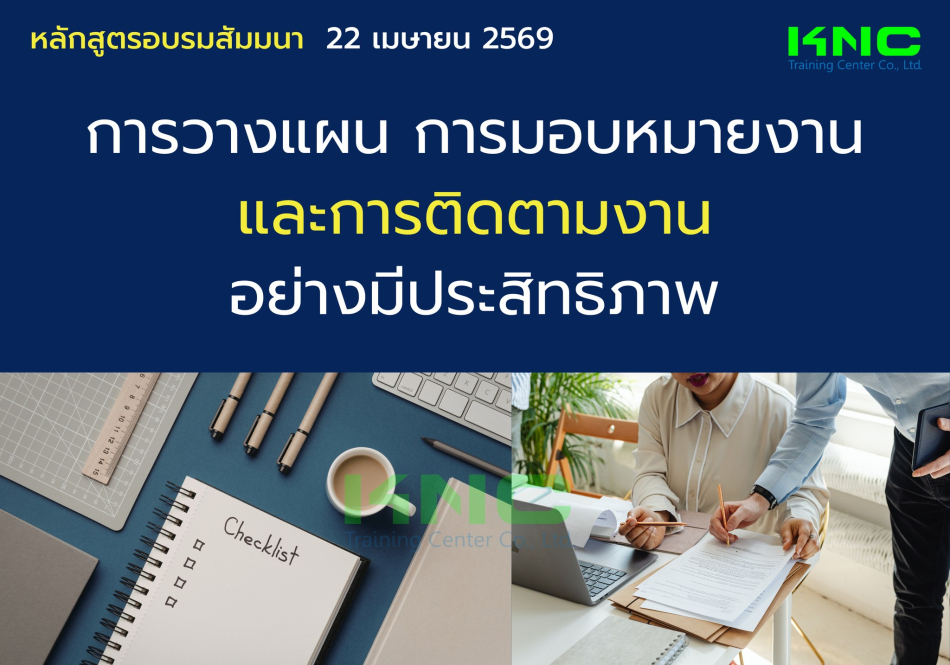 หลักสูตร "การวางแผน การมอบหมายงาน และการติดตามงานอย่างมีประสิทธิภาพ" มุ่งเน้นการเรียนรู้วิธีการวิเคราะห์งานเพื่อมอบหมายงานในแต่ระดับ จิตวิทยาการมอบหมายงาน เทคนิคการติดตามงานเชิงสร้างสรรค์เพื่อให้ลูกน้องมีความพึงพอใจ เกิดขวัญกำลังใจในการทำงานได้ตามเป้าหมาย และผลลัพธ์ตามที่องค์กรตั้งไว้