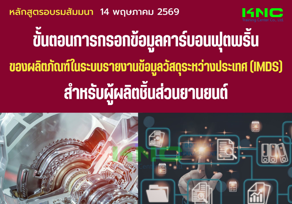เพื่อให้ผู้เข้าอบรม ผู้ผลิตชิ้นส่วน / ผู้ส่งมอบชิ้นส่วนทุกระดับ เข้าใจเป้าหมายและแนวทางการคำนวณปริมาณคาร์บอนฟุตพริ้นท์ของผลิตภัณฑ์Products Carbon Footprint (PCF)ตามมาตรฐานยานยนต์โลกและวิธีการกรอกข้อมูลในระบบรายงานข้อมูลวัสดุระหว่างประเทศ (International Material Data System) IMDSได้อย่างถูกต้อง