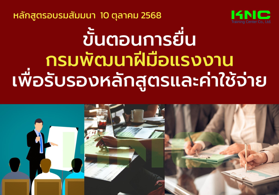 หลักสูตร ขั้นตอนการยื่นกรมพัฒนาฝีมือแรงงาน เพื่อรับรองหลักสูตรและค่าใช้จ่าย เน้นเนื้อหาที่สอดคล้องกับกฎหมายและระเบียบข้อบังคับของกรมพัฒนาฝีมือแรงงาน พร้อมทั้งเพื่อให้ผู้ที่รับผิดชอบในการพัฒนาบุคลากรภายในองค์กร เรียนรู้ขั้นตอน เทคนิค ในการจัดทำเอกสาร การดำเนินการอบรม การยื่นเอกสารขึ้นทะเบียนอบรม ยื่นเอกสารค่าใช้จ่ายอบรม เพื่อให้กรมพัฒนาฝีมือแรงงานรับรอง