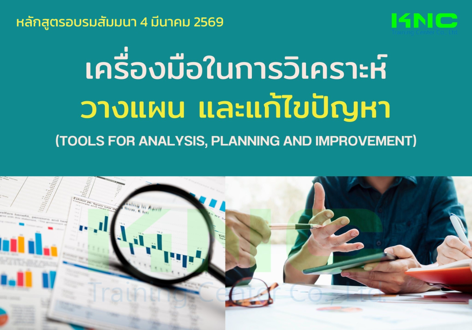 หลักสูตร เครื่องมือในการวิเคราะห์ วางแผน และแก้ไขปัญหา (Tools for Analyze, Planning and Improvement)ผู้เข้ารับการอบรมจะได้แนวคิดที่เป็นเหตุเป็นผล งานทุกงานเป็นกระบวนการถ้ากระบวนการ (เหตุ) ดี ผลลัพธ์ หรือ ปัญหา (ผล) ย่อมดีเช่นกัน จะได้รู้จักการกำหนดปัญหา เทคนิคในการสืบค้นหาสาเหตุที่แท้จริง (สาเหตุรากเหง้า)โดยการใช้เครื่องมือต่างๆ ในการวิเคราะห์งานในการพัฒนา ปรับปรุง แก้ปัญหาได้อย่างมีประสิทธิภาพ และการทดสอบสาเหตุของปัญหา เป็นการป้องกันและสกัดสิ่งบกพร่องไม่ให้หลุดไปยังกระบวนการถัดไป และแก้ไขการสูญเสียความน่าเชื่อถือ มีความสำคัญอย่างยิ่งที่ต้องหลีกเลี่ยงสาเหตุที่ก่อให้เกิดปัญหาเดิม รวมไปถึงการวางแผนงานได้อย่างมีประสิทธิภาพ ส่งผลต่อการพัฒนาคน พัฒนาทีมงาน และพัฒนาองค์กรเพื่อความยั่งยืนต่อไป