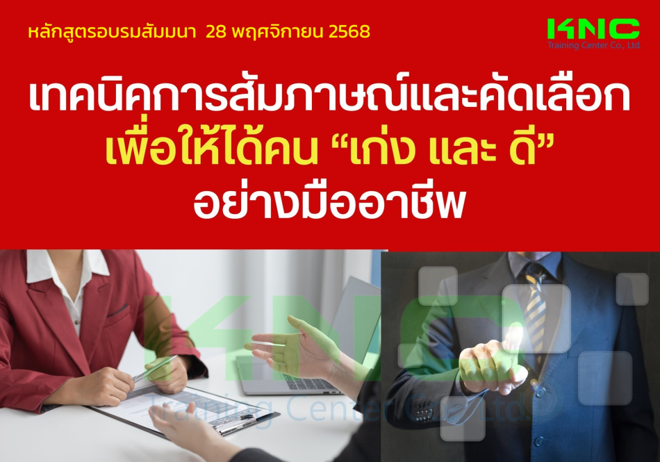 การสัมภาษณ์และคัดเลือกคนในปัจจุบัน ถือเป็นกระบวนการที่สำคัญยิ่งขึ้น เพราะเป็นจุดเริ่มต้นของการที่จะมีกำลังคนที่มีศักยภาพพร้อมขับเคลื่อนองค์กรสู่ความสำเร็จ แต่หลาย ๆ องค์กรมักจะประสบปัญหา เช่น หาคนที่ต้องการไม่ได้ จ้างคนที่ขาดความรู้ความสามารถเข้ามาทำงาน ผู้สมัครมีคุณสมบัติไม่ตรงกับงาน เป็นต้น จึงมีความจำเป็นอย่างยิ่งที่ต้องเรียนรู้เกี่ยวกับเทคนิคในการสัมภาษณ์และคัดเลือกคนสมัยใหม่ เพื่อที่จะสามารถคัดกรองคนเก่งและคนดี มีความเหมาะสมเข้ามาร่วมงานกับองค์กรได้อย่างมีประสิทธิภาพ หลักสูตรนี้ได้รับการออกแบบขึ้นเพื่อช่วยให้ผู้เข้าอบรมมีความรู้ความเข้าใจถึงเทคนิคต่าง ๆ เพื่อใช้ในการสัมภาษณ์และคัดกรองคนได้อย่างมืออาชีพ และได้ผลลัพธ์ตามความต้องการขององค์กรอย่างแท้จริง